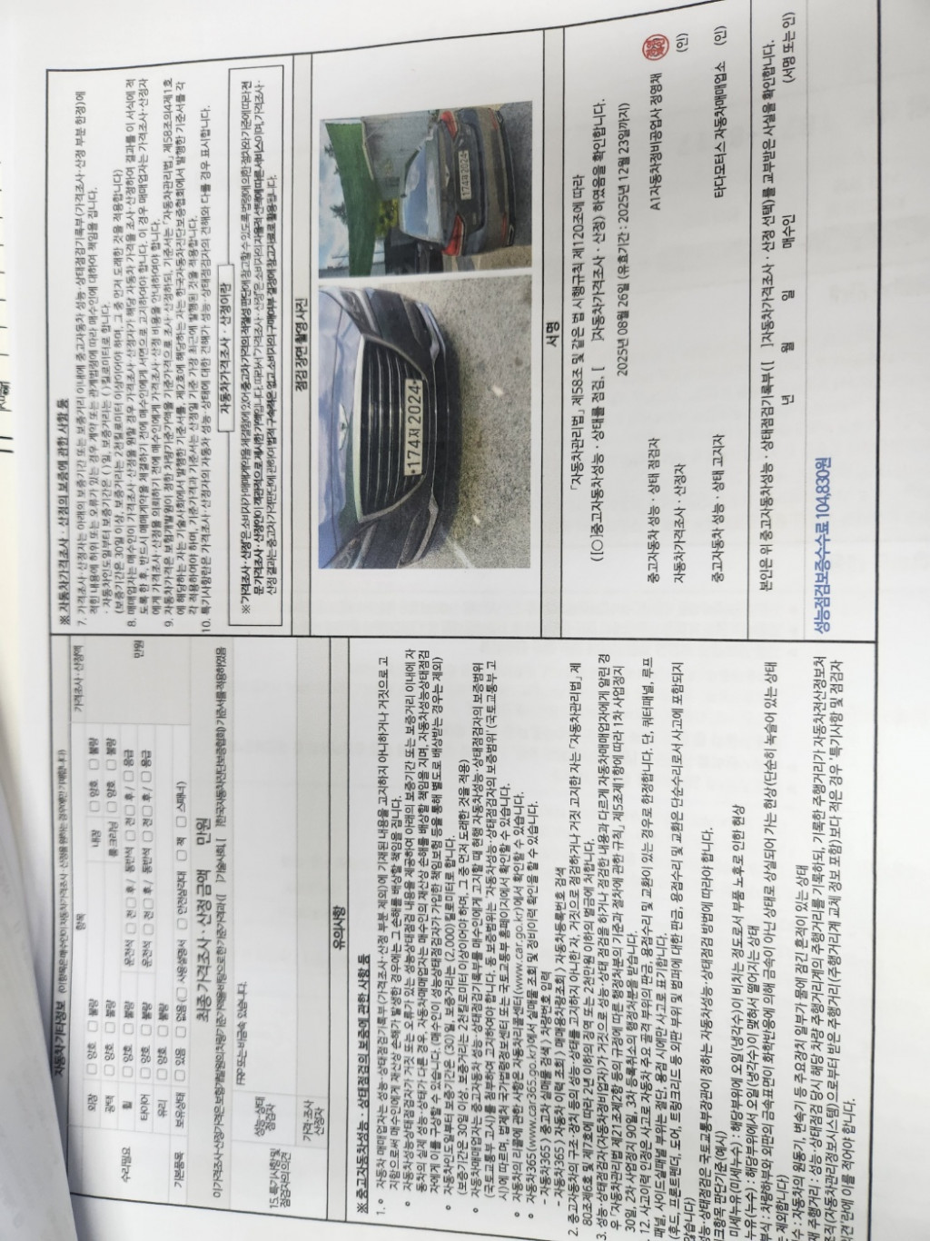 기타 | 성능점검기관별 성능점검 서비스차별화를 위하여 보증항목을 추가할 수 있음 | ||